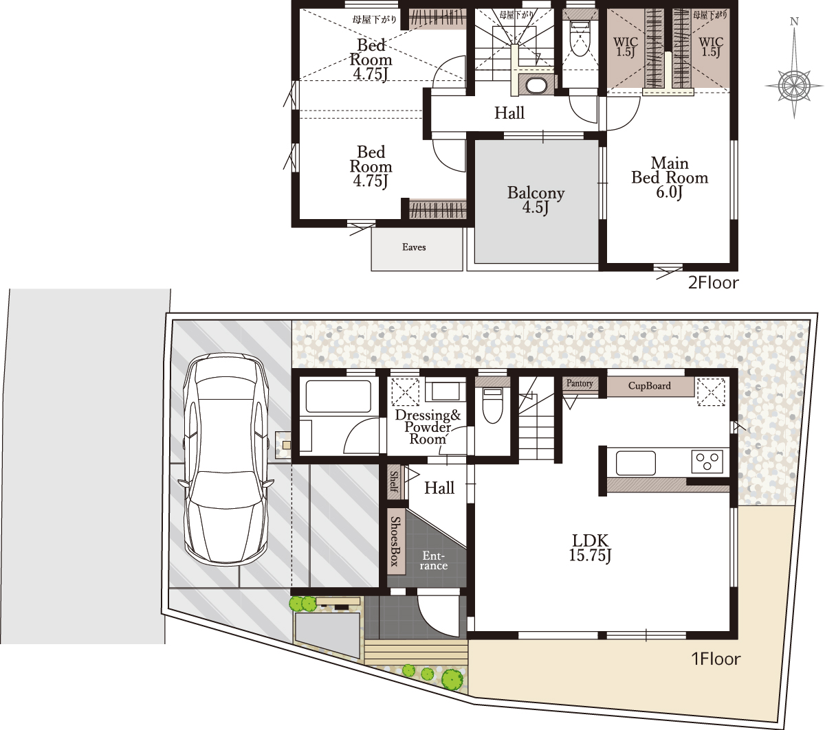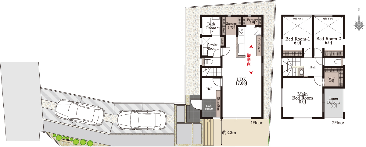 - 間 取:2LDK(3LDKに変更能)+パントリー+WIC×2