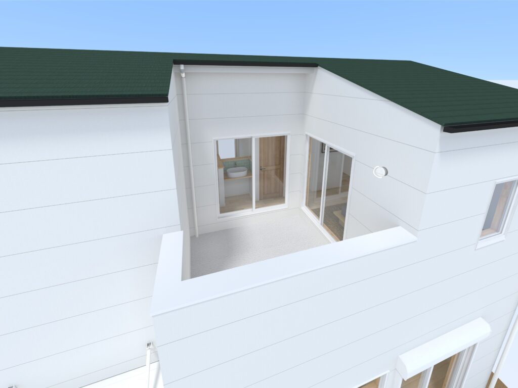 ↓ 4.5帖の外水栓付き広々バルコニーは、お子様やワンちゃんと水遊びをしたり、アウトドア気分で簡単バーベキューをしたり、家族の布団が一気に干せたり、色々な使い道で楽しめます