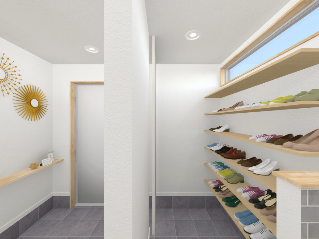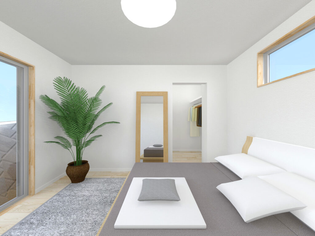 まわりの目を気にしない2階LDK(20.5帖)を採用。リビング上部には開放的な勾配天井を設けました。光と風を取り込む大空間は、就寝までずっといたくなる心地よさ。家族が自然と集まる、最高の居場所です。