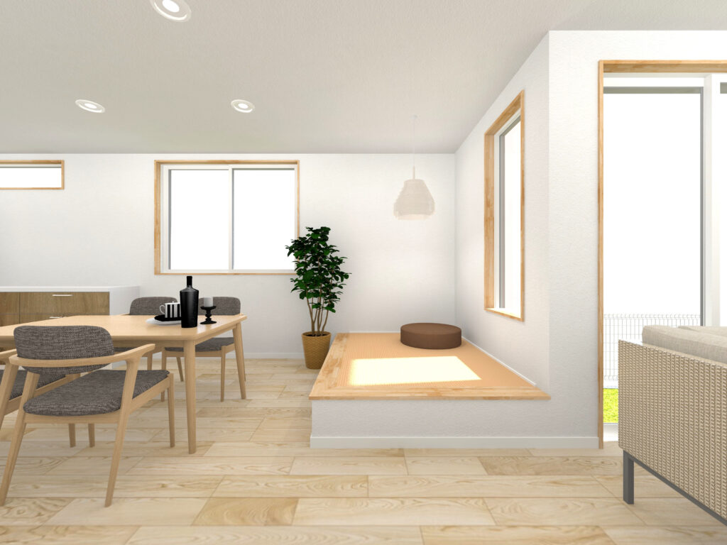 22帖超の大空間LDKと豊富な収納、片付け上手になれる間取り設計