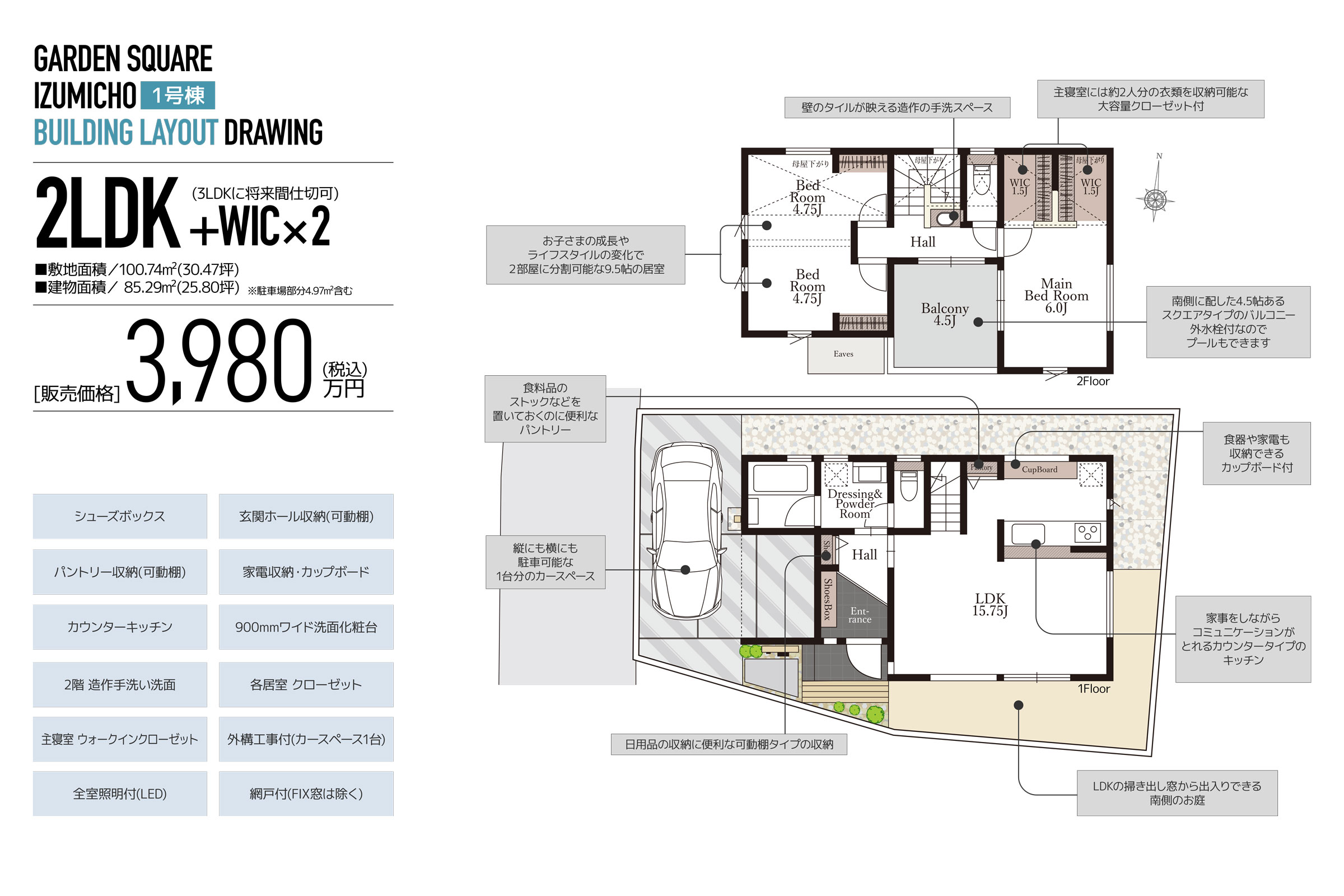 販売価格 1号棟:3,980万円(税込)