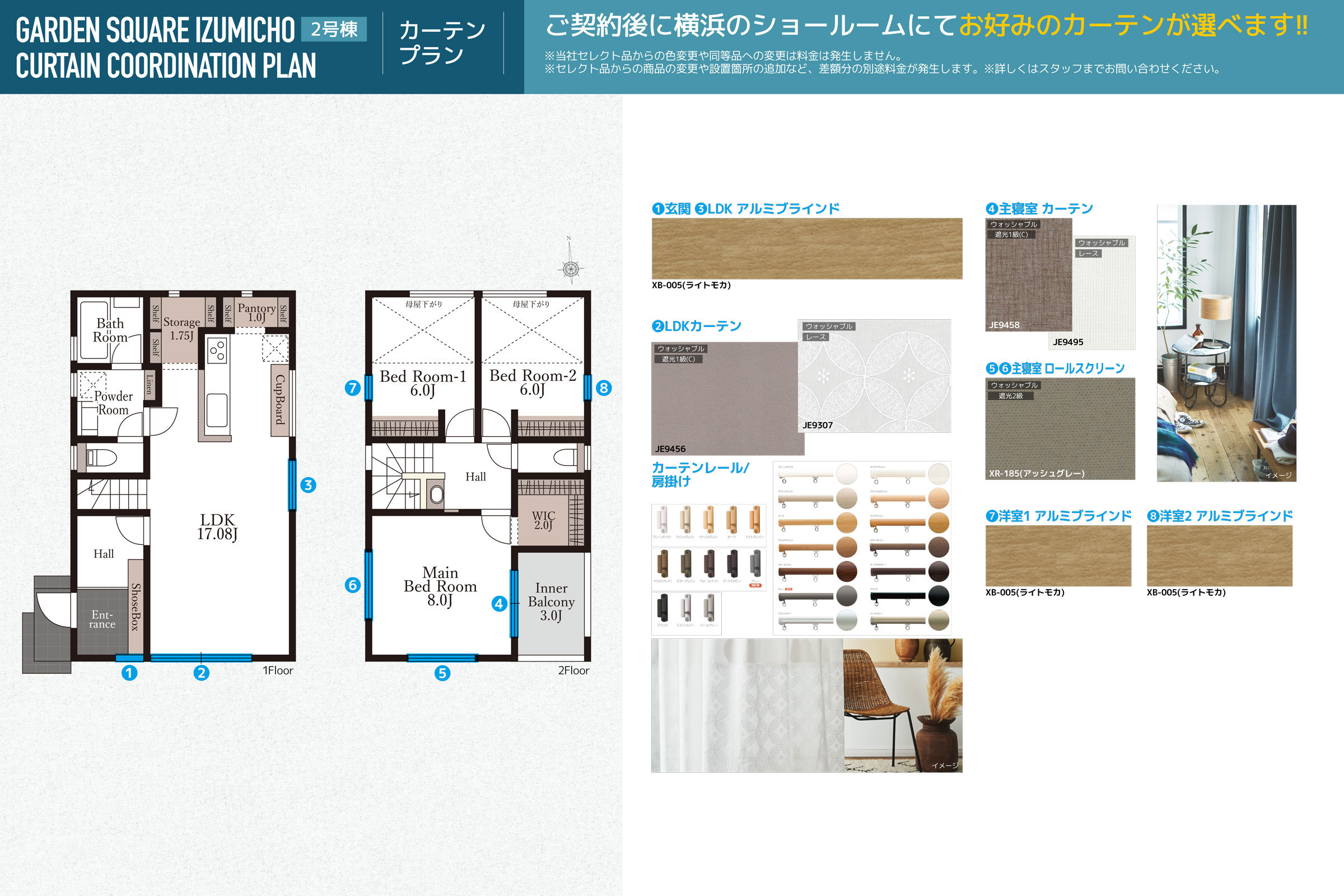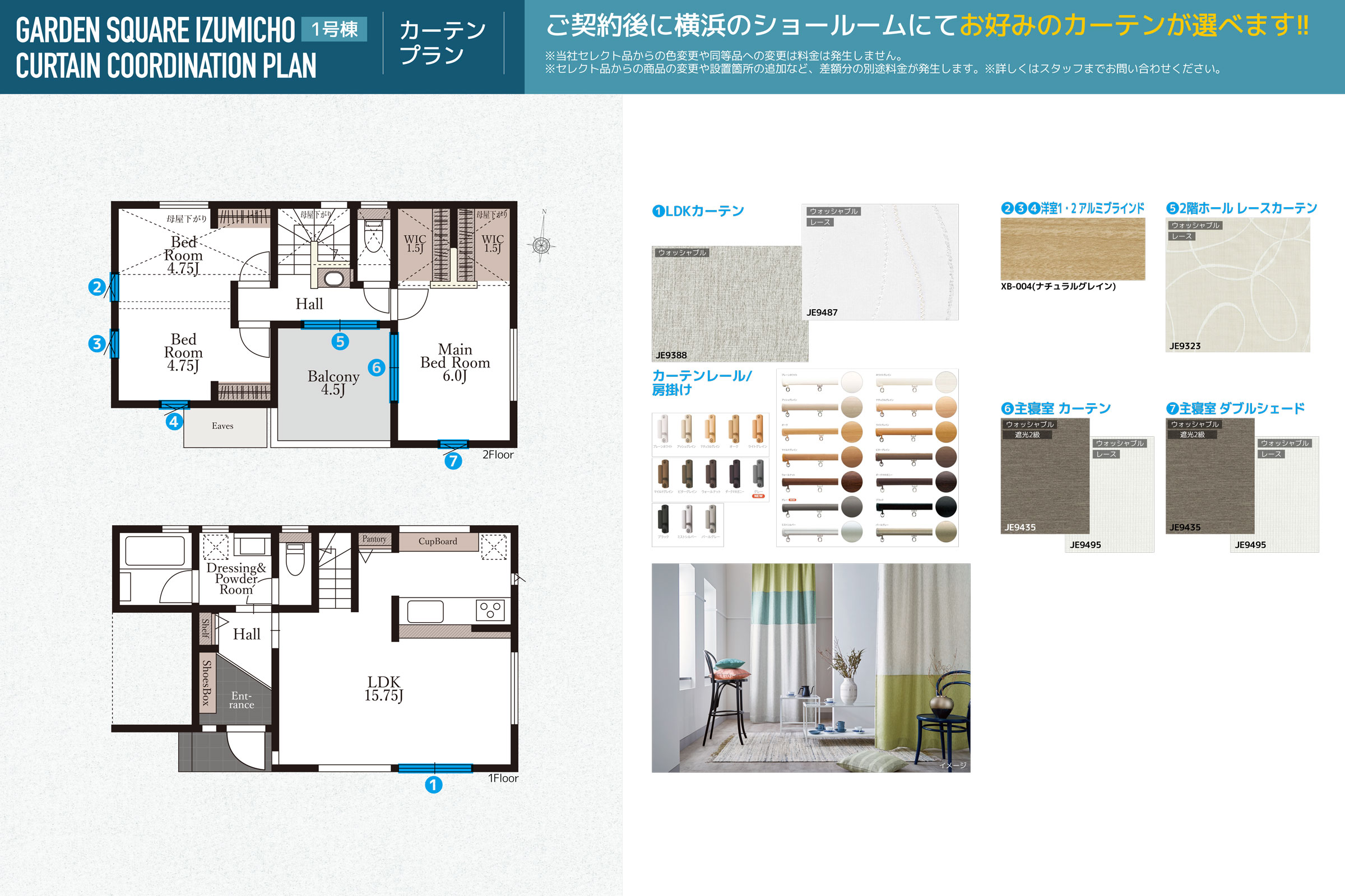 ■カーテンレール・カーテン付(当社指定箇所・指定品 成約後打ち合わせにて変更可能)