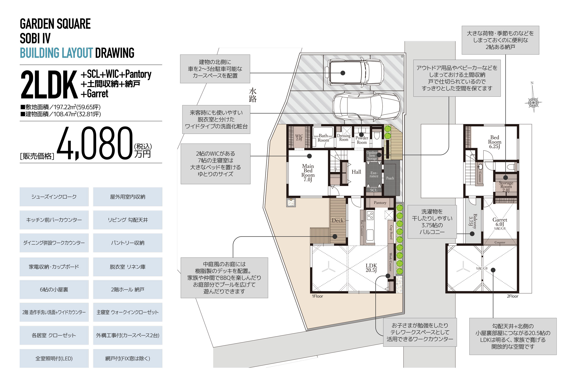 | 土地面積 | 197.22㎡(59.65坪) | 販売価格 | 4,080万円(税込) |